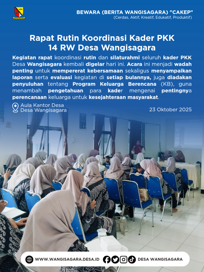 Dengan adanya pertemuan rutin dan penyuluhan seperti ini, diharapkan koordinasi antar kader semakin kuat serta program-program desa dapat berjalan dengan lebih efektif demi terwujudnya Desa Wangisagara yang maju, sehat, dan sejahtera.